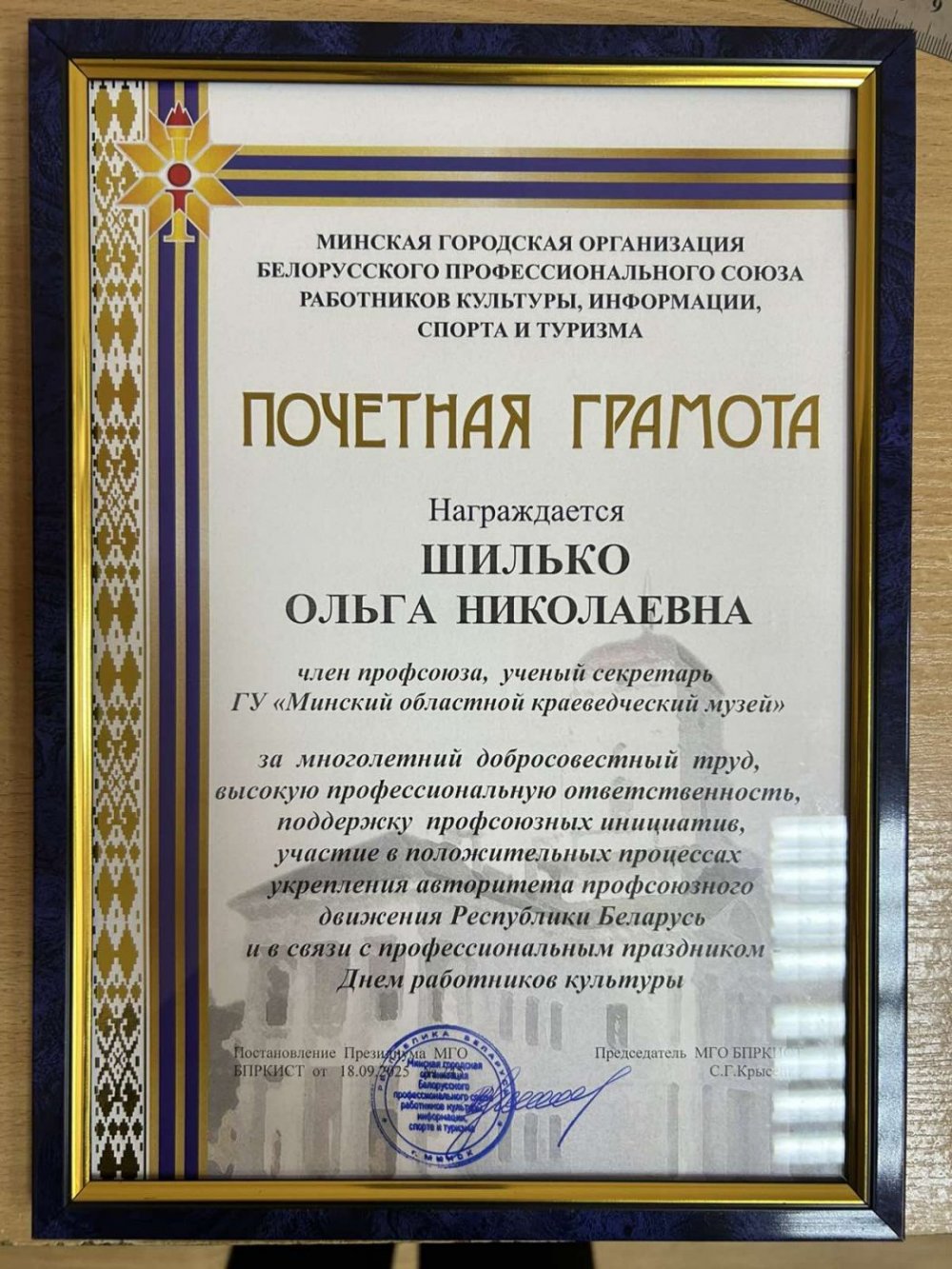 Во Дворце культуры им. М. Горького г. Борисов состоялось областное мероприятие, посвященного Дню работников культуры. В адрес работников культуры звучали слова благодарности, а лучшим из лучших были вручены заслуженные награды. Отмечены наградами учёный секретарь ГУ "Минский областной краеведческий музей" Шилько Ольга Николаевна, директор ГУК "Логойский историко-краеведческий музей имени Константина и Евстафия Тышкевичей" Гамезо Светлана Игоревна, заместитель директора по научной работе ГУ "Историко-культурный музей-заповедник „Заславль“" Семашко Ксения Владимировна. Всех работников культуры поздравляем с профессиональным праздником!!!